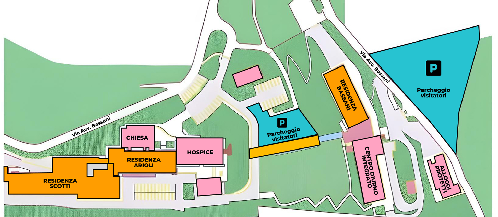 All’interno di un ampio parco di oltre 25.000 mq, si trovano le strutture che accolgono le unità assistenziali della Fondazione